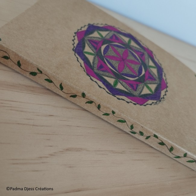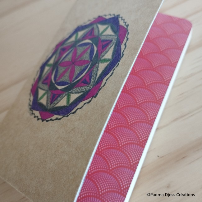 Petit carnet avec un mandala dessiné sur la couverture.