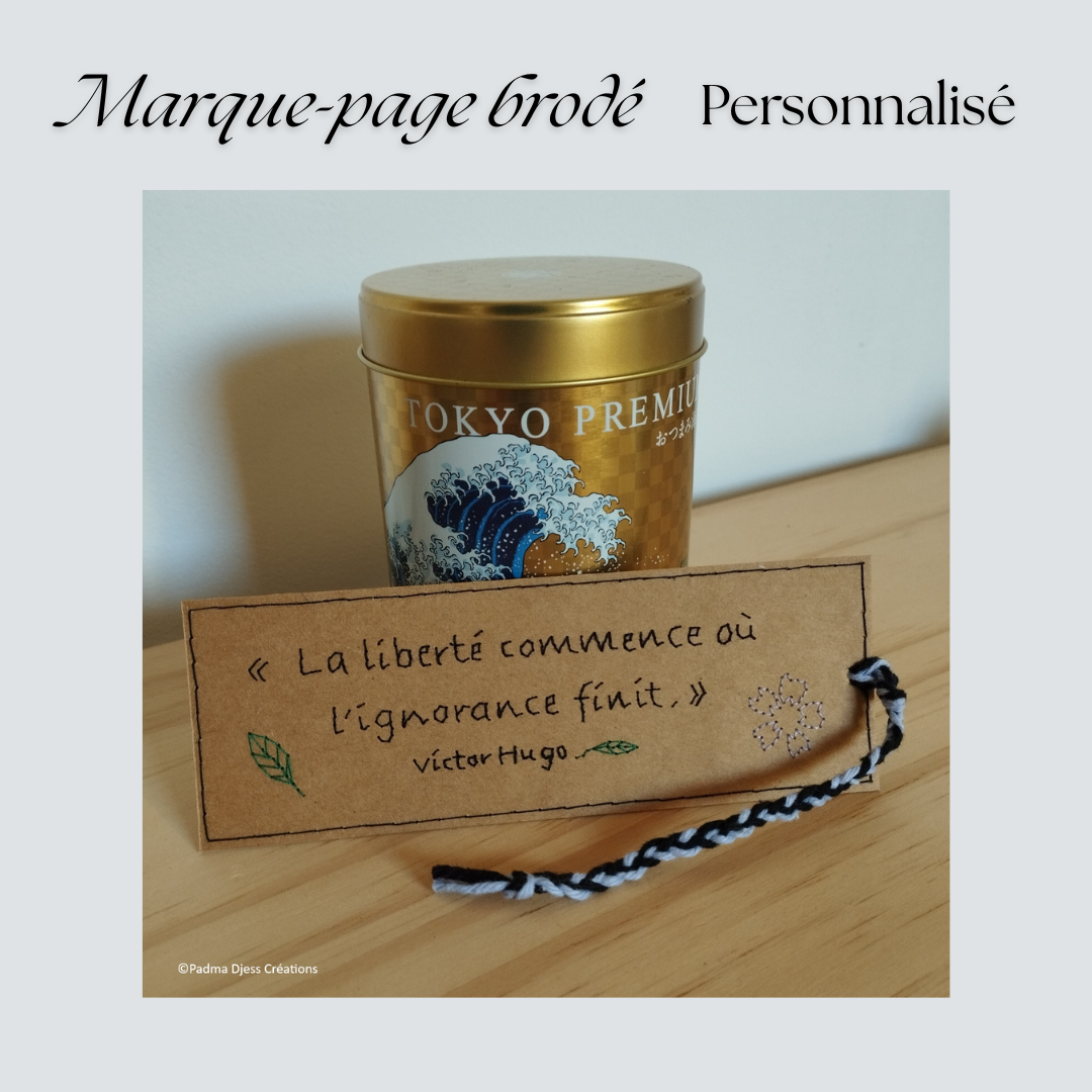 Je peux broder une citation courte ou un message sur un marque-page, avec la couleur du fil que vous souhaitez.